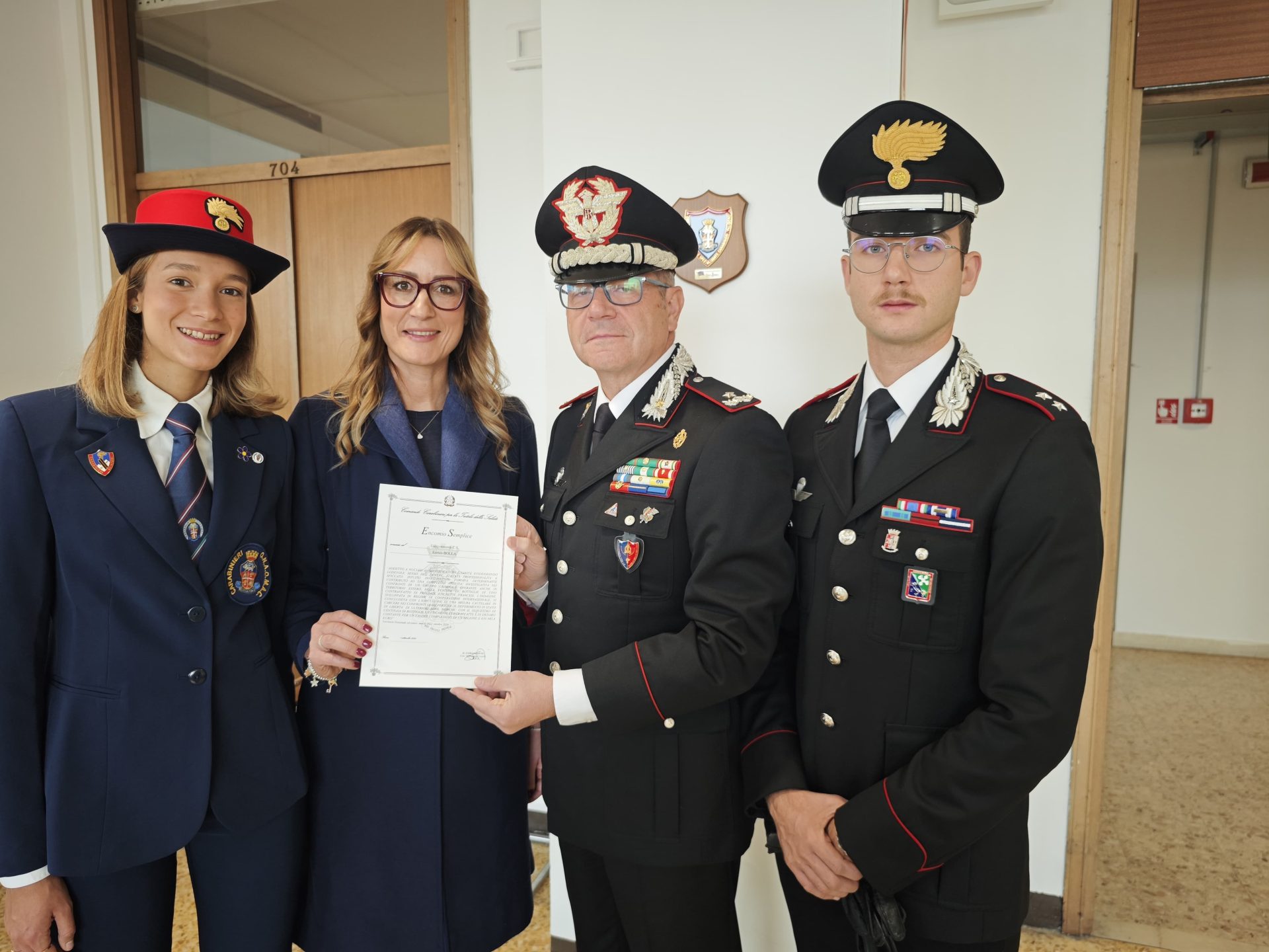 L’encomio destinato al compianto Luogotenente C.S. Enrico Bolla è stato consegnato, in un clima di profonda commozione, alla figlia Alessia e alla moglie Teresa Fiume.